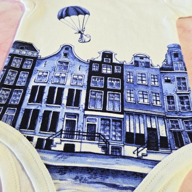 Every onesie is adorned with meticulously detailed Delft Blue motifs that echo the enchanting designs of Holland’s canal houses. This striking design not only elevates your baby’s style but also fosters a deep connection with Dutch cultural heritage.